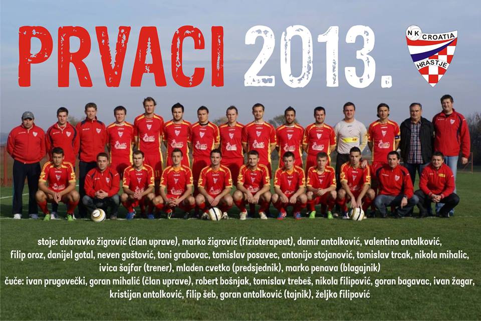 U sezoni 2012. / 2013. NK Croatia Hrastje postaje prvak 1. ŽNL Istok i plasira se u Jedinstvenu županijsku nogometnu ligu.